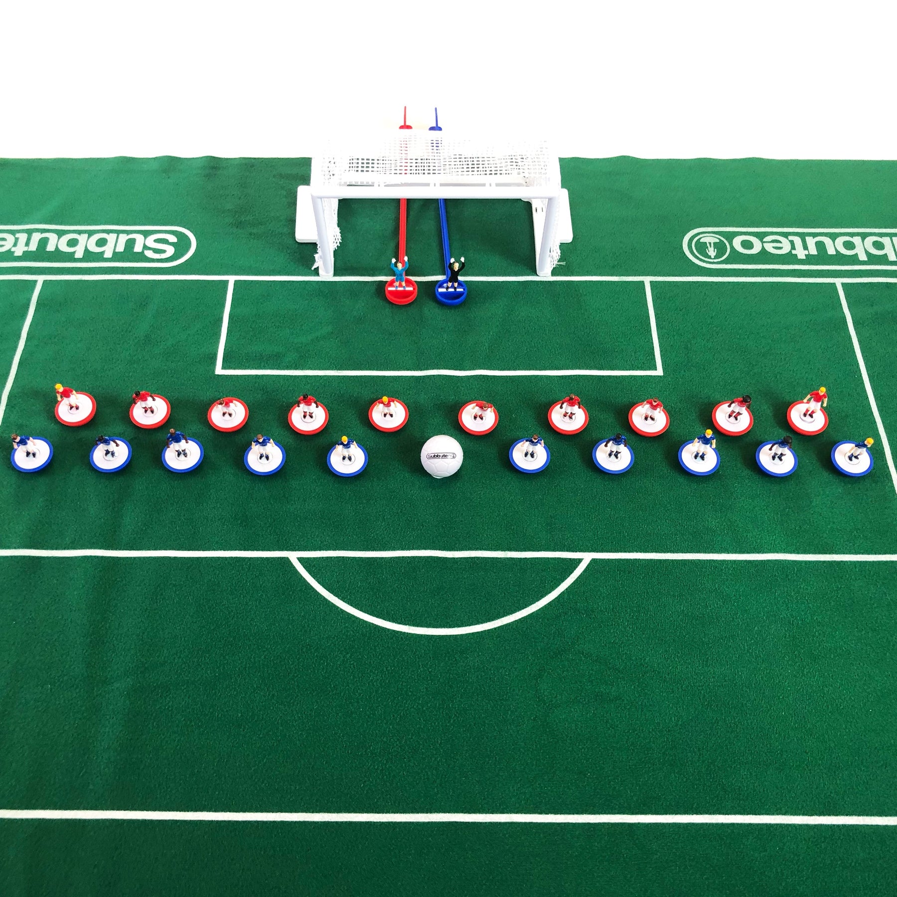 The Subbuteo Game comes complete with 20 players (10 wearing blue shirts with white shorts and 10 wearing red shirts and white shorts), 2 goalkeepers, a high quality pitch, goals and a ball so pick your team, decide your game plan and victory will be at your fingertips!