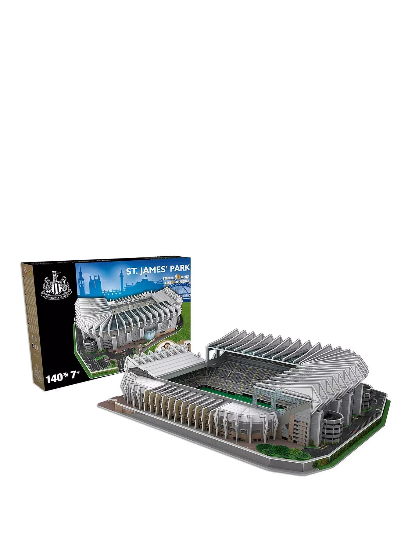 Newcastle stadium 3D puzzle packaging featuring St. James' Park design for fans and builders.